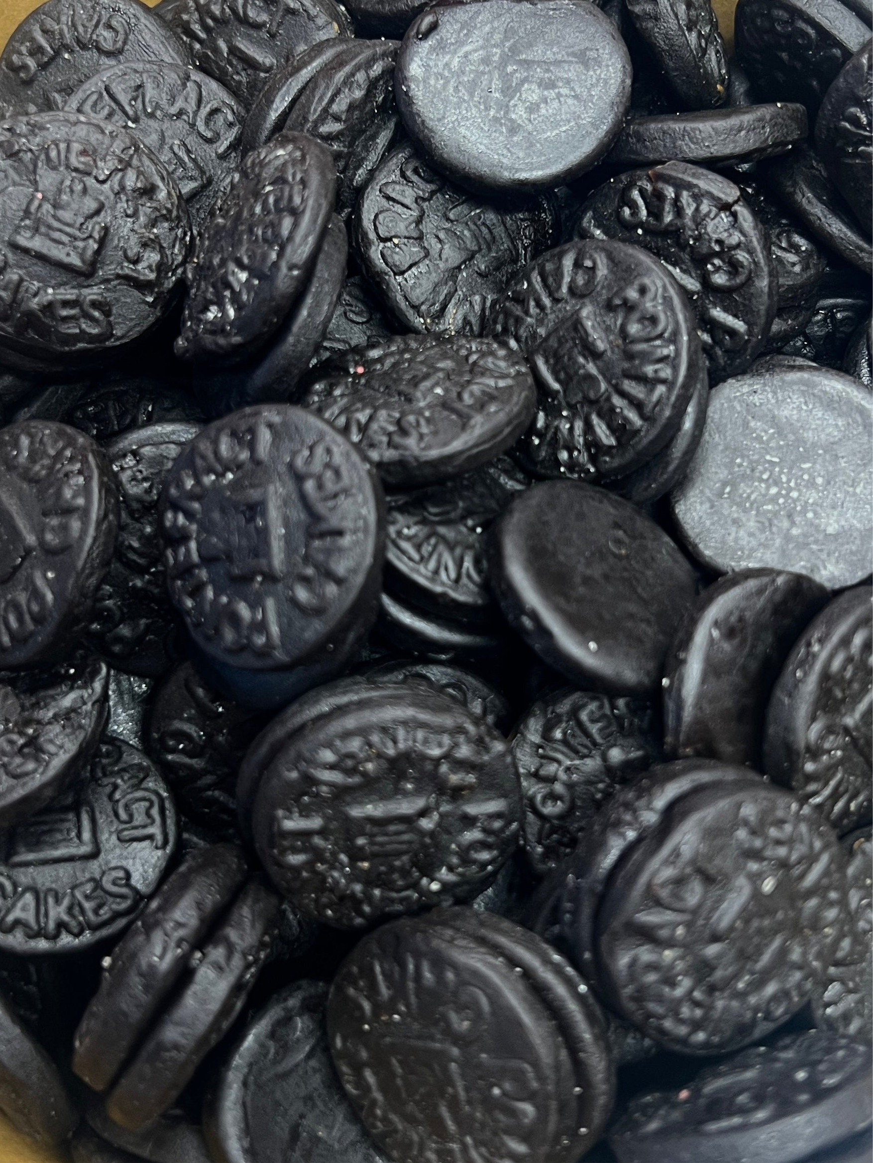 A soft, round liquorice sweets with a rich, distinctive flavour and a chewy texture.